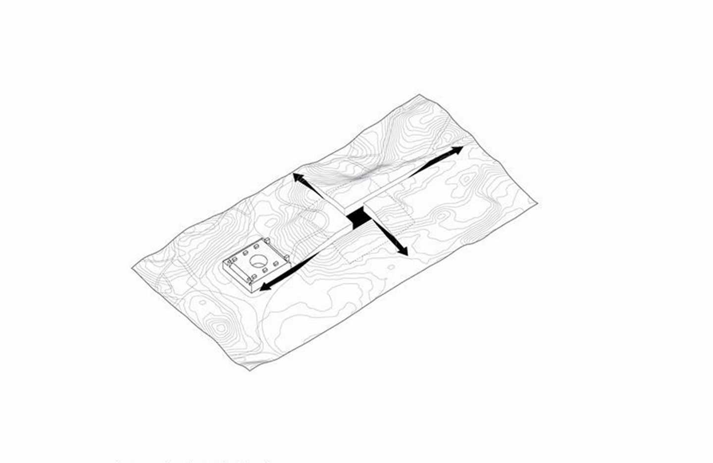 Проект олицетворяет агрессивное, но поэтичное взаимодействие с рельефом, вдохновленное формой японского меча. В отличие от мимикрии, здесь работает контраст: идеально ровная, острая бетонная плита врезается в хаотичную, грубую скальную породу. Дом спроектирован так, чтобы казаться результатом тектонического сдвига или удара клинка. Аэродинамическая форма позволяет зданию не сопротивляться ветрам, а пропускать их через себя. Жилая часть полностью скрыта под наклонной плитой-«лезвием», делая архитектуру продолжением геологического разлома, а не чужеродным объектом на поверхности.