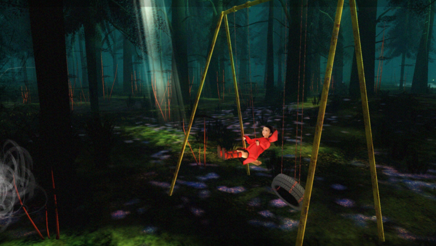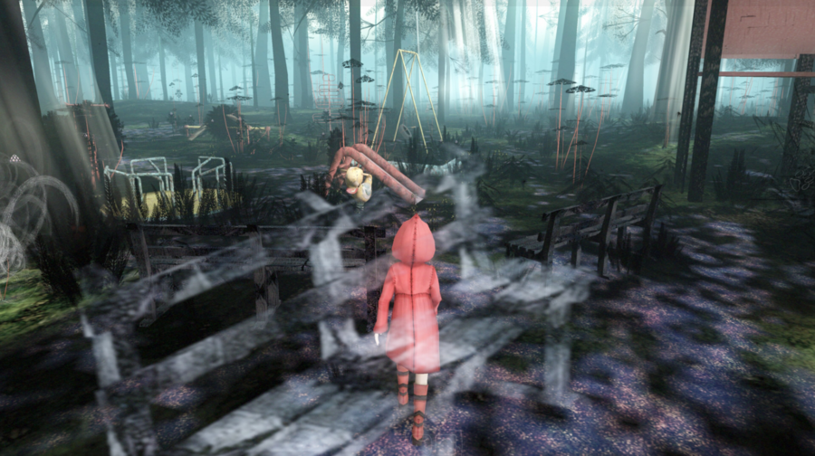 Еще сильнее работает появление объектов, нарушающих уже не просто эстетическую, а ситуативную или физическую логику. Детская площадка, которая по своей сути должна быть местом шума и радости, в лесной тишине выглядит пугающе мертвой.