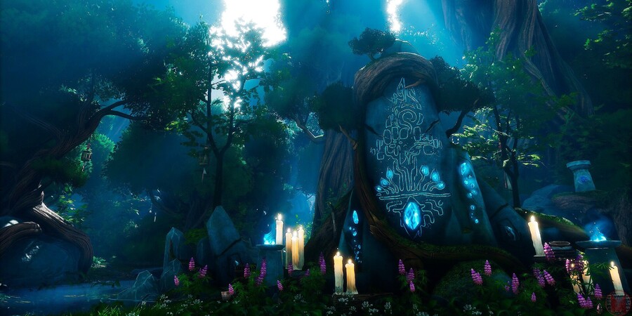 Даже полуразрушенное святилище воспринимается как убежище посреди дикой чащи. Игрок интуитивно чувствует сакральность места: здесь можно остановиться или получить благословение.