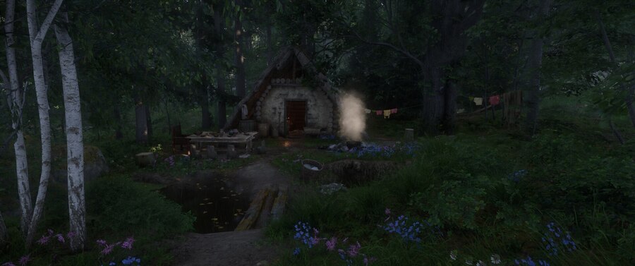 Жилые зоны в лесу — это территории передышки, где враждебная, неконтролируемая среда отступает перед защищенным пространством, созданным человеком. Игрок считывает это как акт сопротивления: на этой отвоеванной земле правила выживания временно уступают место быту.