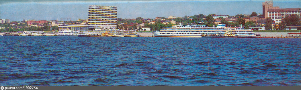 Деревянный водный вокзал, построенный в 1936 году по проекту архитектора Леонида Волкова, в стиле советского неоклассицизма, сразу стал визитной карточкой города. Водный вокзал города Куйбышева просуществовал 35 лет, вплоть до постройки нового здания речного вокзала и гостиницы «Россия».