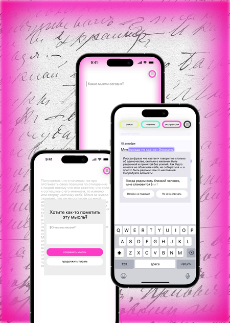 Наконец, цифровой формат открывает возможность соединить expressive writing с более мягкими повседневными практиками. Письмо становится не одноразовым актом, а доступной формой повседневной заботы о себе: короткая запись перед сном, быстрый эмоциональный комментарий к событию, фиксация образа или мысли. Продукт поддерживает это через отсутствие давления: нет требований писать «правильно», нет необходимости создавать длинные тексты, нет страха перед пустой страницей. Письмо здесь — не обязанность, а способ вернуть себе контакт с внутренним процессом.