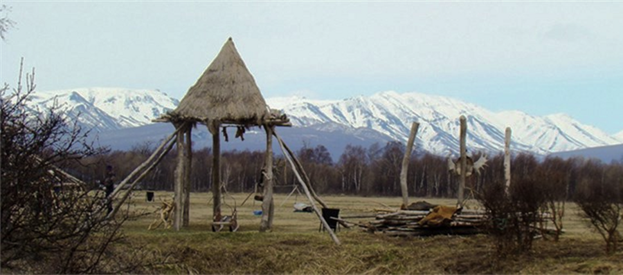 Однако с приходом теплого сезона архитектура кардинально менялась, переходя к принципу поляризации. Главным элементом летнего пейзажа становились балаганы — уникальные каркасные постройки, приподнятые над землей. Балаган представлял собой конический или пирамидальный шалаш из жердей и травы, водруженный на платформу, опирающуюся на высокие деревянные сваи (обычно высотой 3–4 метра).