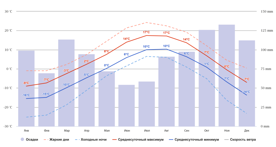 Климатический профиль территории формируется под влиянием морского климата с чертами субарктического, для которого характерны мягкая зима со средним минимумом около -16°C и прохладное, влажное лето с максимумом +17°C. Однако объективные температурные показатели здесь обманчивы: высокая влажность воздуха в сочетании с постоянными ветрами существенно снижает уровень комфорта, делая погодные условия субъективно более жесткими. Режим увлажнения избыточен в течение всего года, достигая пиковых значений в осенний период, что зимой приводит к образованию мощного снежного покрова.