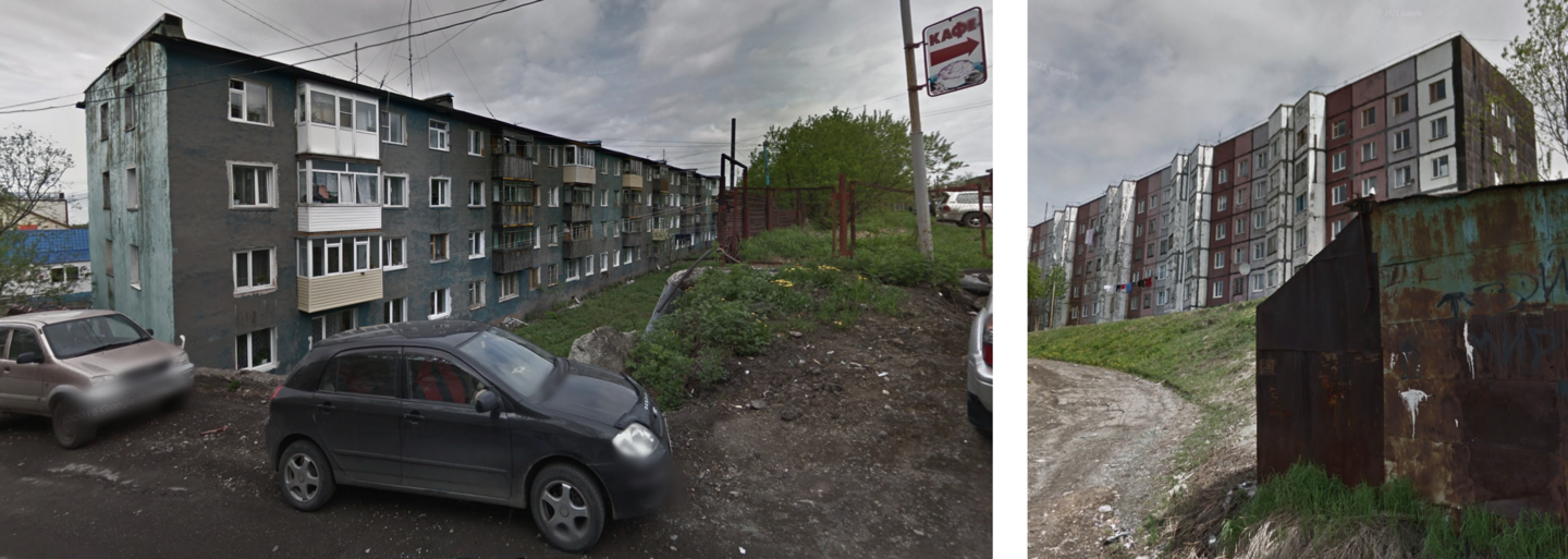• Нереализованный видовой потенциал: Хотя природный рельеф формирует предпосылки для создания ценных визуальных коридоров в сторону Авачинской бухты и вулканов, в настоящее время этот потенциал не реализован. Виды в большинстве случаев перекрыты хаотичной застройкой, заборами или воздушными линиями коммуникаций.