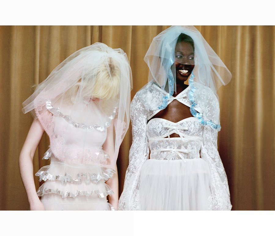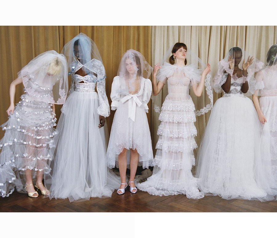 Исследование состоит из найденных на показах разных годов платьев, в которых могли бы выйти невесты на свадебное празднование.