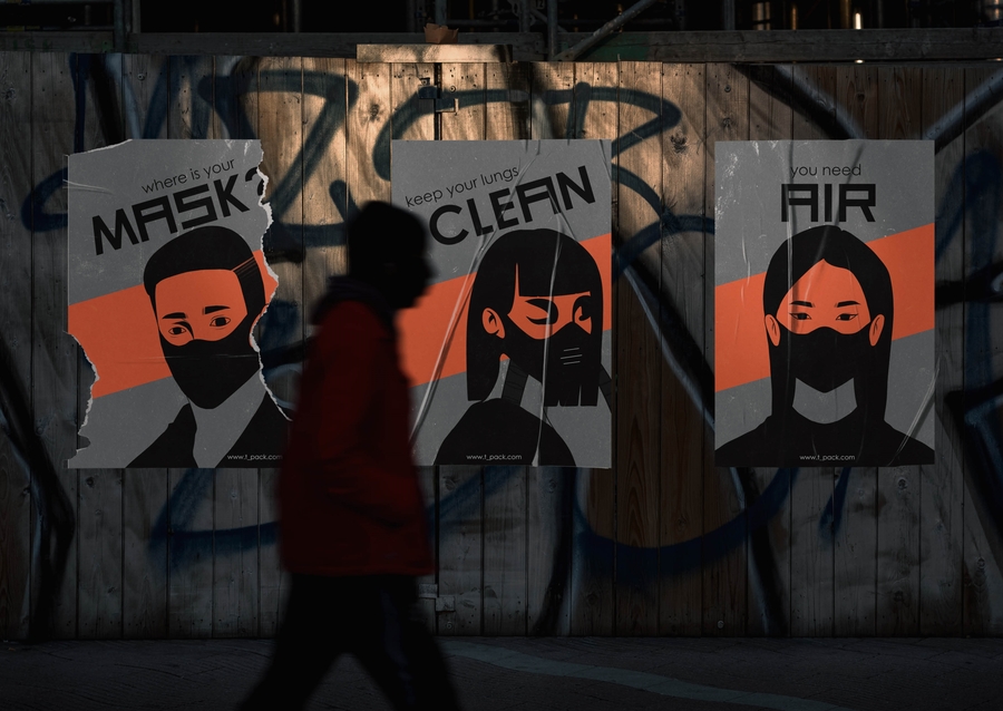 prompt: an outside mockup for posters, post-apocalyptic, sci-fi, rugged, survival aesthetic, overgrown, urban
