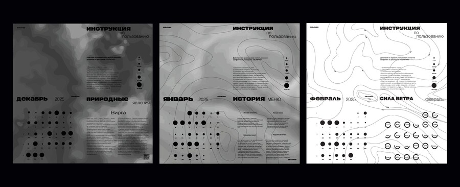 Календарь создан в виде салфеток в ресторане «ОБЛАЧНО», которые гость может забрать домой в качестве сувенира. Она будет напоминать ему о времени, проведенном в ресторане и помогать разобраться с погодными условиями на сегодняшний день.