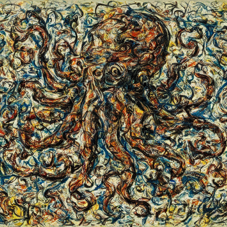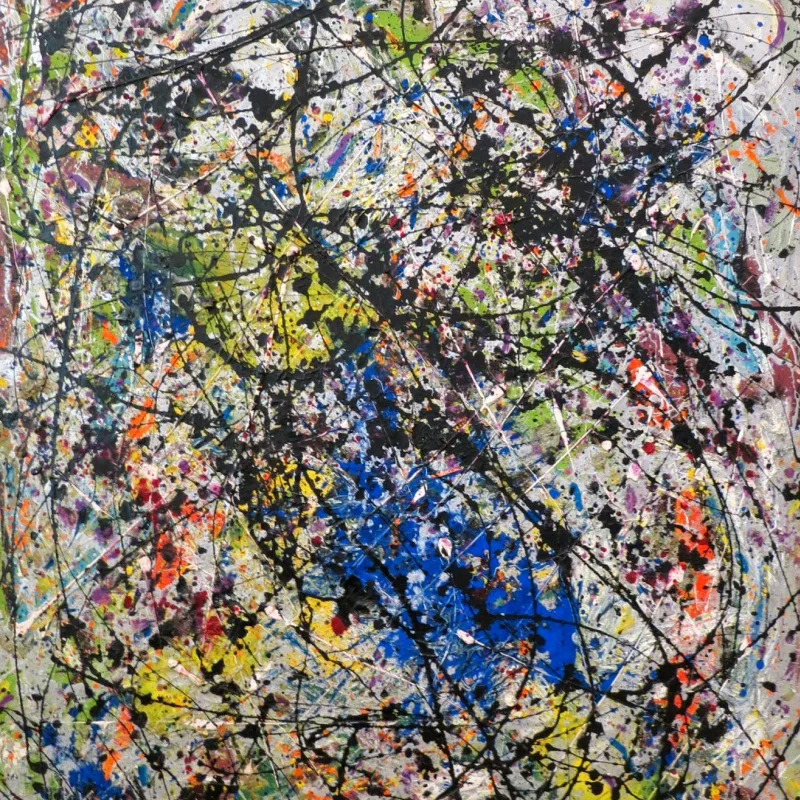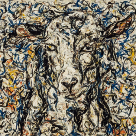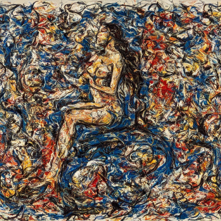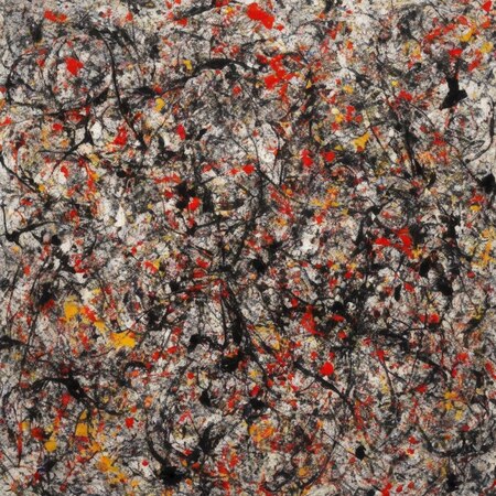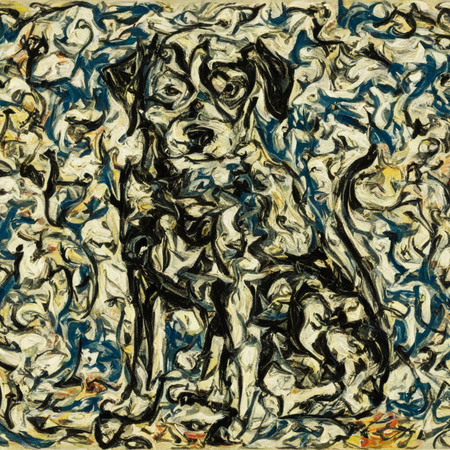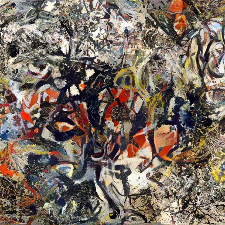 Для до-обучения генеративной нейросети я использовала картины Джексона Поллока. Передо мной стояла цель обучить модель его живописной стилистике.