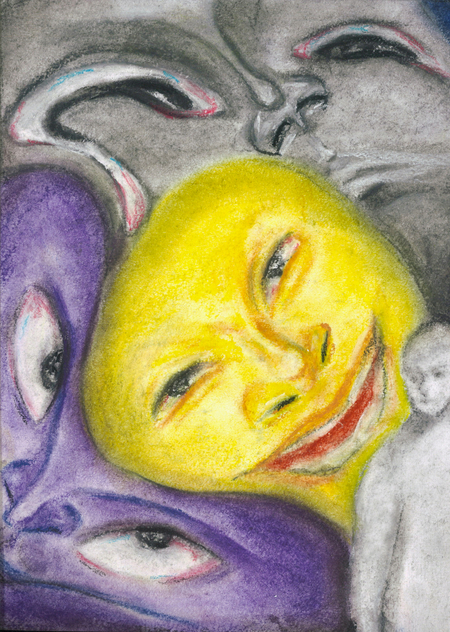Я решила показать столкновение, безэмоционального по своей природе мальчика с эмоциональным, жестоким миром. Именно поэтому в своих иллюстрациях я обьединила две составляющие рассказа: сюжетную линию и ощущения, чувства от событий, описываемых в рассказе.