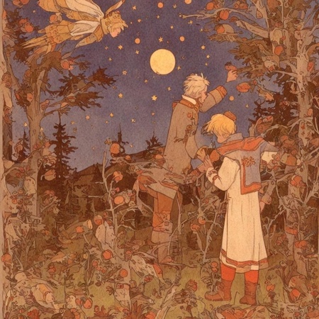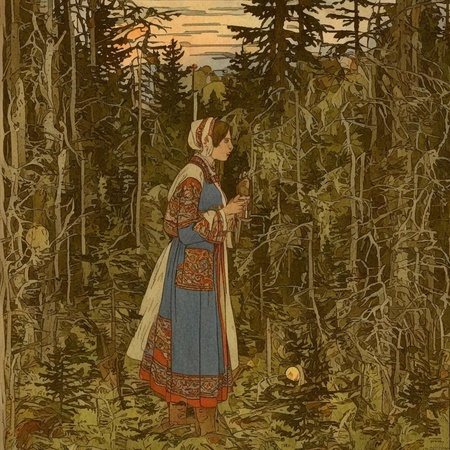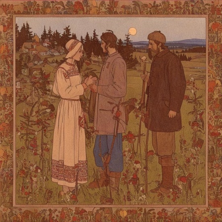 Проект демонстрирует значительный прогресс нейросети для воссоздания уникального стиля Ивана Билибина. Получилось успешно перенять ключевые черты его работ: графичную контурную обводку, сложные орнаменты с этническими мотивами, а также характерную сдержанную палитру, где доминируют охристые, изумрудные и терракотовые оттенки. Сгенерированные иллюстрации сохраняют узнаваемую «сказочную» атмосферу — в них прослеживаются детализированные пейзажи с дремучими лесами, стилизованные терема и декоративные рамки, напоминающие старинные книжные миниатюры. Особенно удачным результатом стала передача текстуры «состаренной» бумаги.