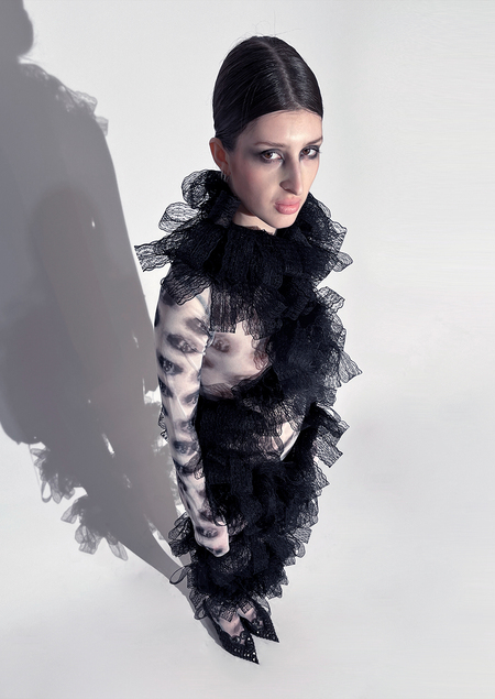 «Я хочу быть живым произведением искусства», — сказала как-то маркиза Казати о себе. Она сумела стать иконой стиля и музой для деятелей искусства, моды и кино, но свои дни закончила в нищете и одиночестве. В этом году исполнилось 140 лет со дня рождения графини — поэтому целью моего проекта было вспомнить наследие Луизы Казати и интерпретировать ее неповторимый образ в своем дизайне.