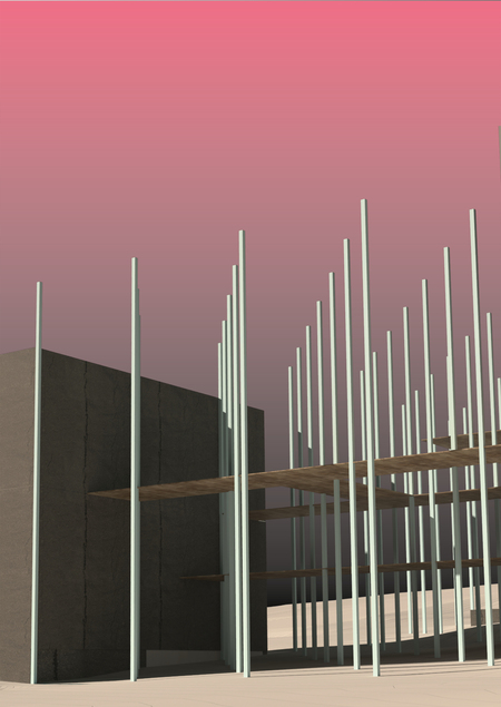 Между двумя главными зданиями есть воздушные переходы, закрепленные на прямоугольные колонны, имеющие не только опорную, но и декоративную функцию