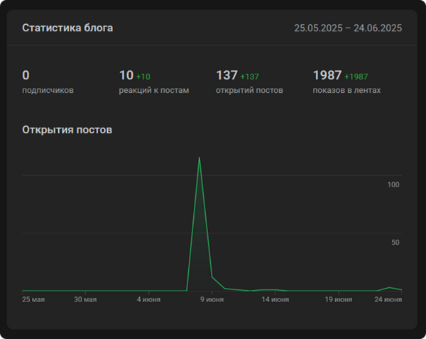 В отличие от видеоконтента, статьи на vc.ru и DTF продемонстрировали разную результативность: vc.ru — 286 показов, 40 открытий → ~14% CTR DTF — 1980 показов, 134 открытия → ~6.7% CTR Хотя DTF дал больше охвата, vc.ru показал более качественную заинтересованность (процент переходов). Это может свидетельствовать о лучшем совпадении аудитории vc.ru с тематикой проекта. Выводы из анализа: Видео на YouTube Shorts демонстрируют лучший охват. TikTok показывает выше вовлечённость на меньшем охвате. Статьи в текстовом формате эффективнее при точном попадании в интересы аудитории.