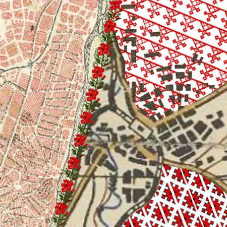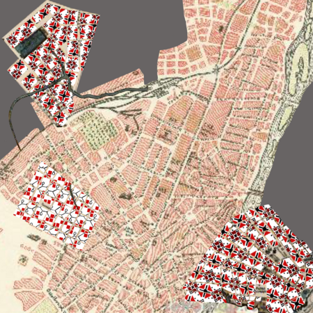 Монументальная карта-палимпсест. Она выглядит как гигантский шрам на земле или слепок уличной сети разрушенного квартала. Это не прямая картография, а эмоциональная топография, созданная из бетона и «материалов-свидетелей».