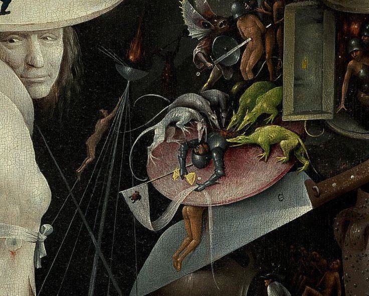 Фрагменты картины Иеронима Босх,"Сад земных наслаждений», изображение жабы, 1500–1510 гг.