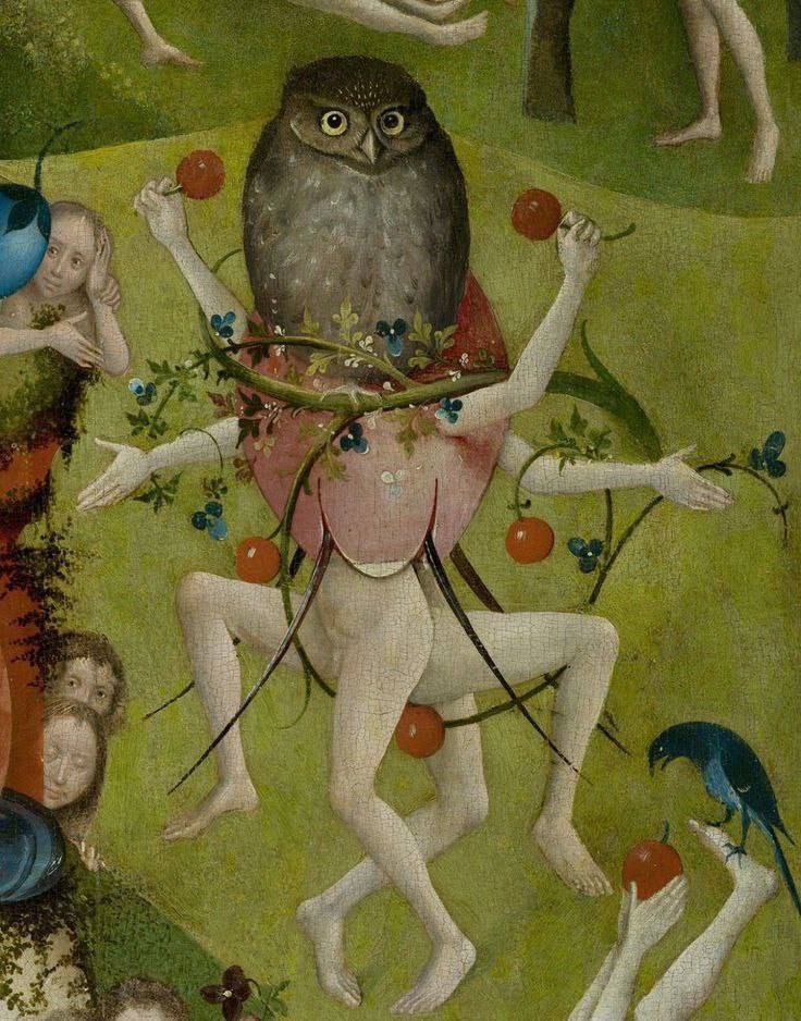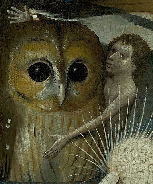 Фрагменты картины Иеронима Босха «Сад земных наслаждений», изображение совы, 1500–1515 гг.
