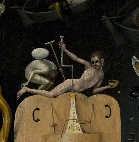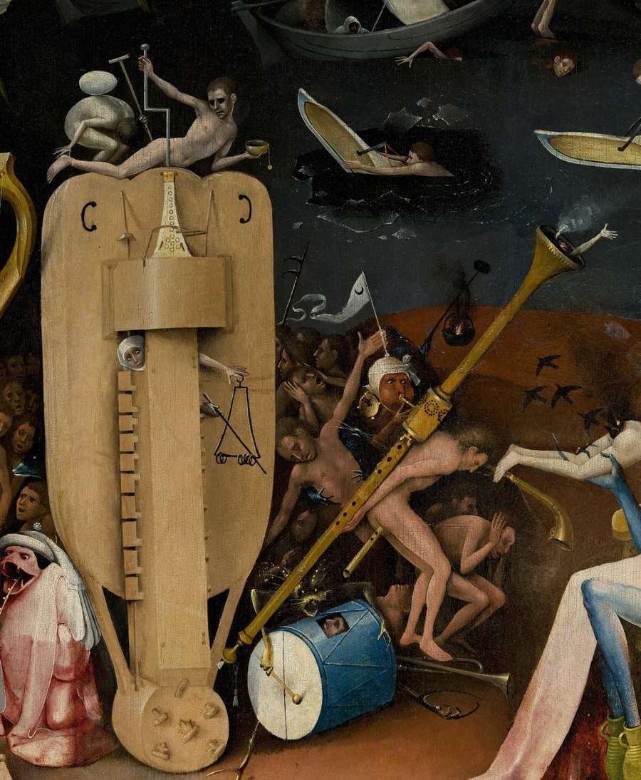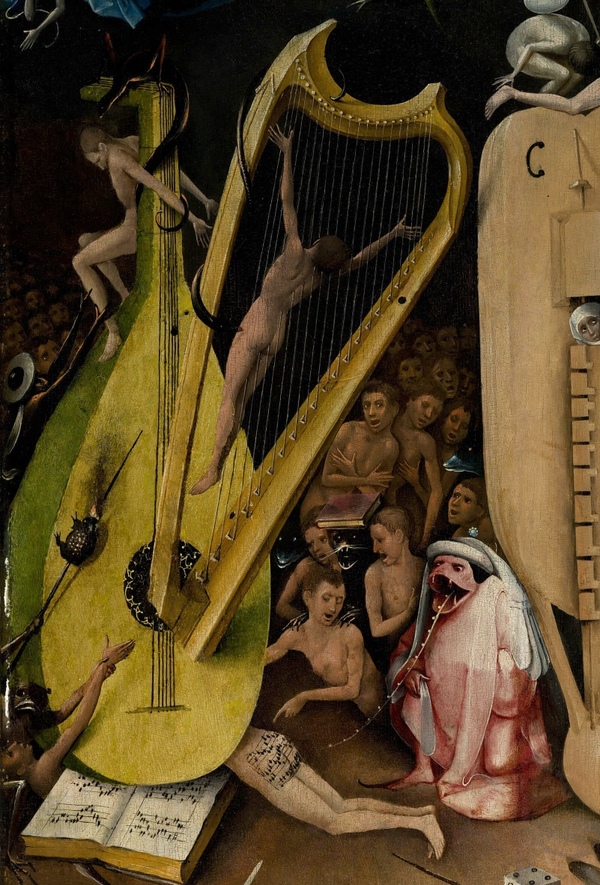 В средневековье считалось, что «похоть-это музыка во плоти», тем самым музыка придается окраске чего-то праздного, напыщенного. Босх использует музыкальные инструменты как орудие пыток, как бы наказывая человека за распущенности и праздность.