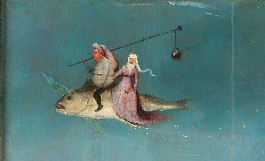 Фрагмент картины Иеронима Босха " Сад земных наслаждений «, изображения рыбы, 1500–1510 гг.