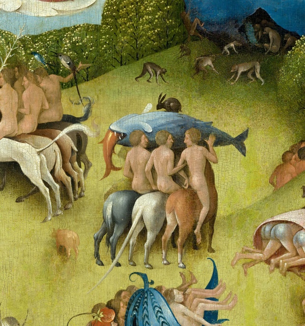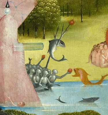 Фрагменты картины Иеронима Босха " Сад земных наслаждений «, 1500–1510 гг., изображения рыбы.
