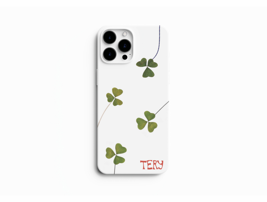 // a phone case with the name of an eco-friendly powerbank company called TERY. the company’s colors are green, red, blue and white.