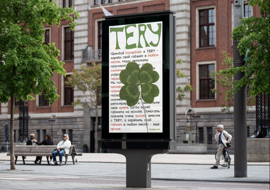 TERY — это сервис по аренде экологичных пауэрбанков. Они заряжаются от солнечных батарей.
