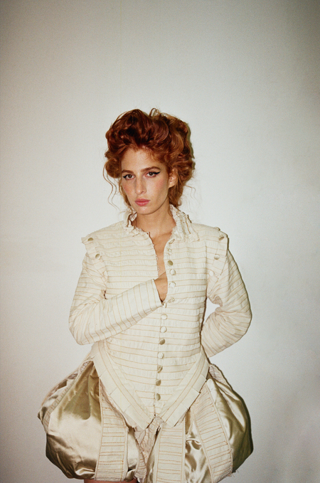 Костюм: Дмитрий Кузнецов («Дизайн одежды» Школы дизайна НИУ ВШЭ, 2 курс). Реплика испанского придворного платья с картины Алонсо Санчеса Коэльо «Эрцгерцог Альбрехт VII». Жакет: Мария Жудро («Дизайн одежды» Школы дизайна НИУ ВШЭ, 2 курс). Реплика изделия императрицы Марии Александровны.