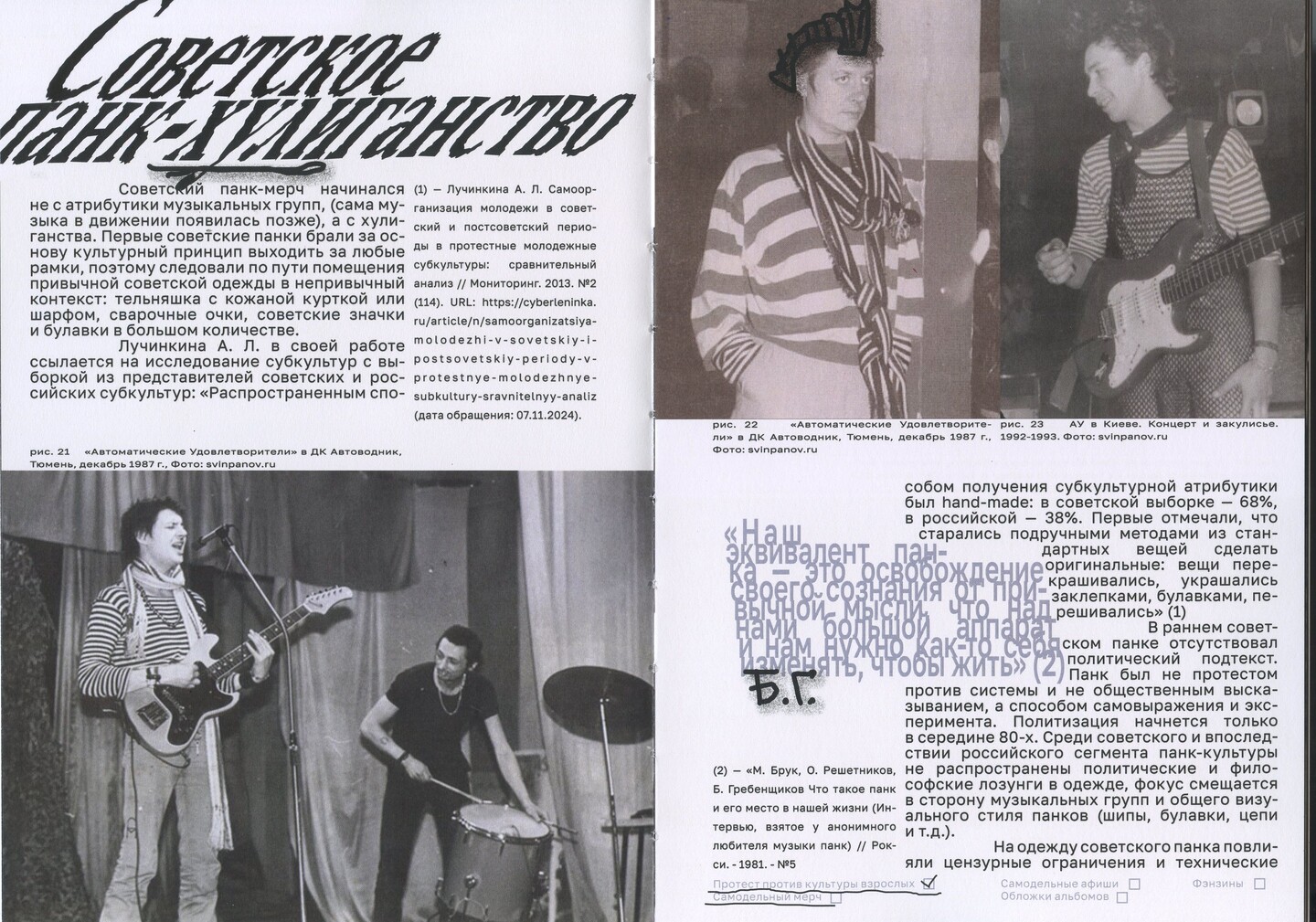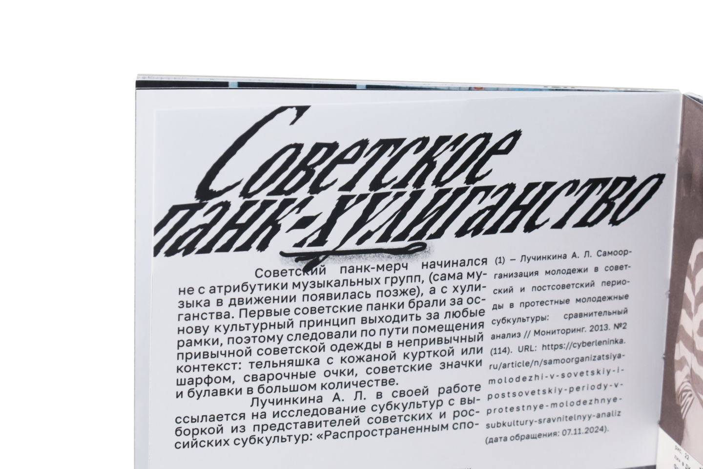 Это визуальное исследование посвящено DIY практикам в контексте панк-культуры как одному из важнейших элементов идентичности. Далее будет рассмотрена работа с типографикой, иллюстрациями и фотографиями на примере самодельного фанатского мерча, афиш, обложек альбомов и фэнзинов. Главный аспект анализа — рукотворность объектов, техническое исполнение в рамках ограниченных ресурсов и связь визуала с идеологической составляющей панк-культуры.