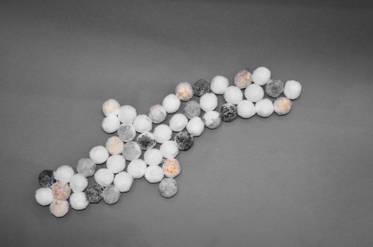 / Вторая часть — мягкие флисовые части кресла: покрывало, сшитое из круглых подушек, которое перекинулось через спинку на сиденье и спустилось словно коврик к ногам сидящего.