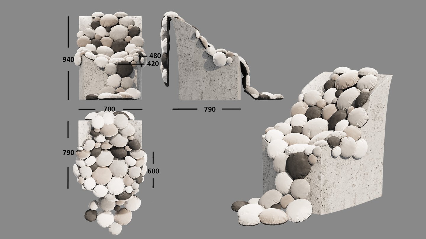 Концепция проекта основывается на стремлении запечатлеть соединение диаметрально отличных друг от друга материалов и форм. Кресло YOPU стильно впишется в современные стили интерьера. Оно состоит из двух противоположных по свойствам частей: