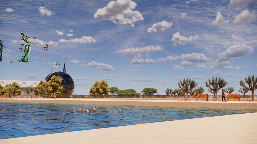 Парковое пространство вдохновлено творчеством испанского художника Сальвадора Дали. Это — удивительное путешествие в мир фантазий и грез великого живописца.