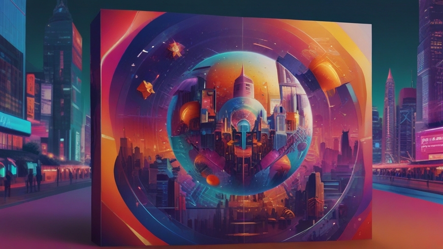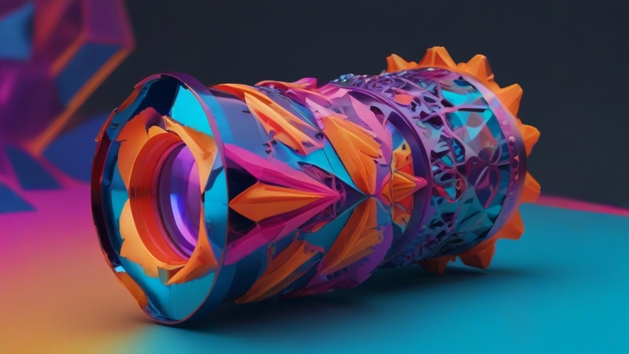 promt: A futuristic kaleidoscope souvenir, crafted with innovative materials and dynamic shapes, bursting with neon and bright colors that will transport you to a vibrant and mesmerizing world.