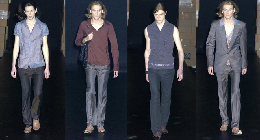 Сначала меня пригласили просто стилизовать показ. Приехать, посмотреть коллекцию. У них через месяц был показ, и нужно было что-то с этим сделать. Я приехал на Варшавское шоссе и увидел эту коллекцию: это были костюмы для работников, возможно, для чиновников. Скучные плащи, пара пальто — совершенно не модные, не молодежные силуэты.