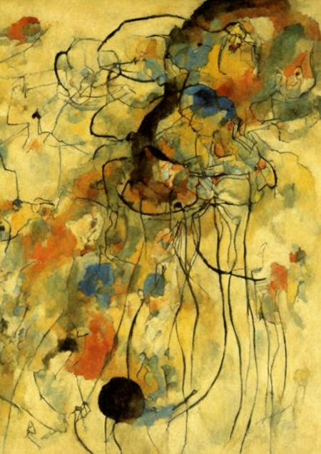 В полученных результатах можно отслеживать свободный и экспериментаторский стиль Василия Кандинского. Сохранились общие мотивы и через абстрактные штрихи может проследить очертания медуз. Проект был не просто экспериментом со стилем, а попыткой прочувствовать каким бы образом нейросеть работала с живым, неуловимым существом через работы значимого в истории художника.