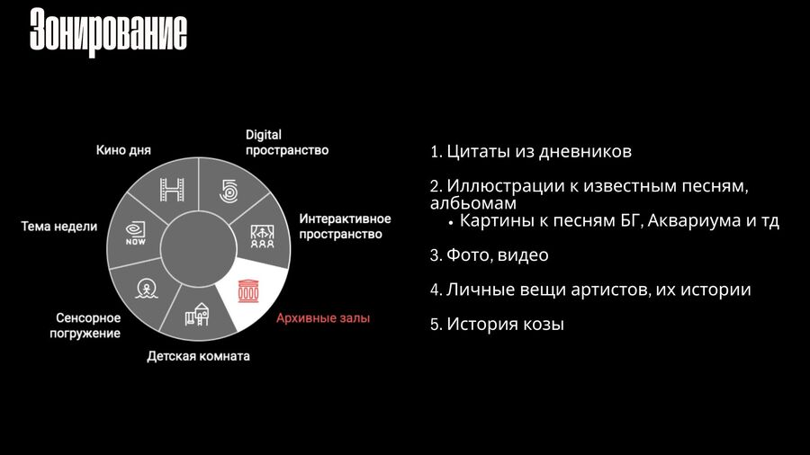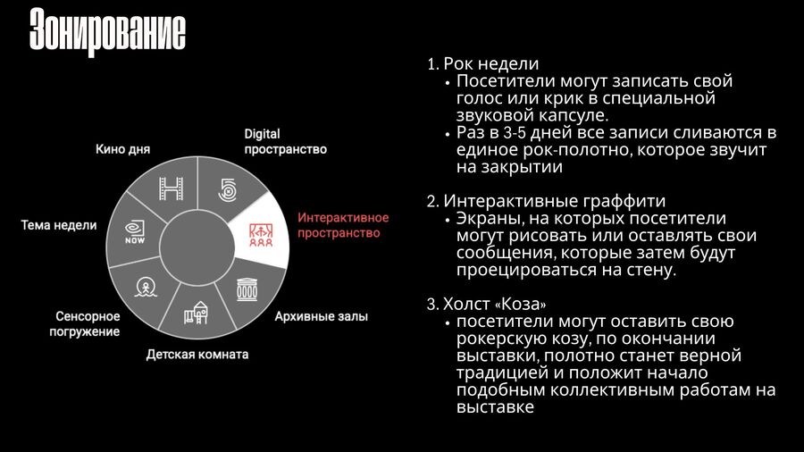 1 Проанализировать наполняемость выставок-конкурентов 2 Создать формулу успешной выставки на основе конкурентного анализа 3 Создать зонирование, механику проекта 4 Описать наполняемость, содержание зон 5 Создать бренд, айдентику