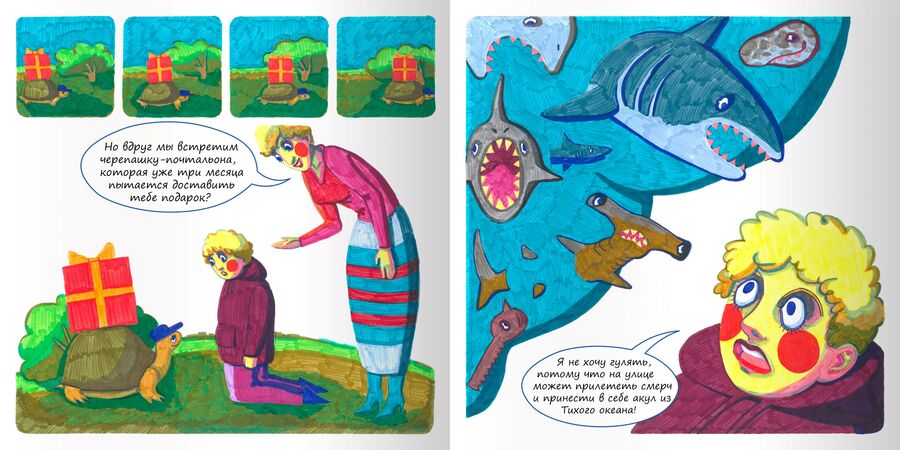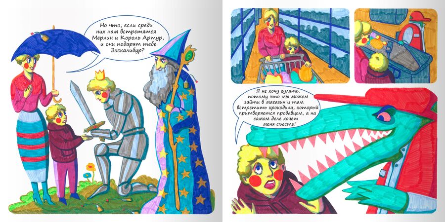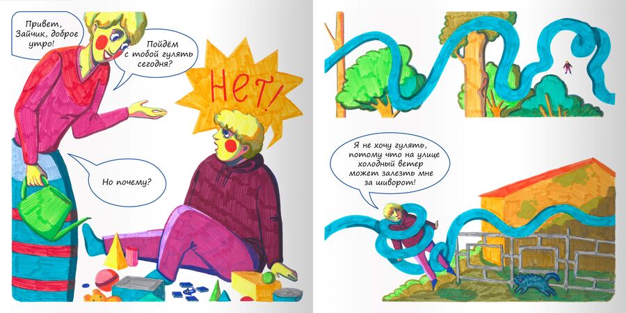 Маленький мальчик упрямится и не хочет гулять. Его Мама пытается уговорить сына выйти на улицу. В процессе разговора они перебирают аргументы за и против прогулок. Постепенно доводы становятся всё более абсурдными.