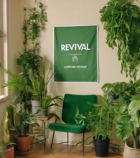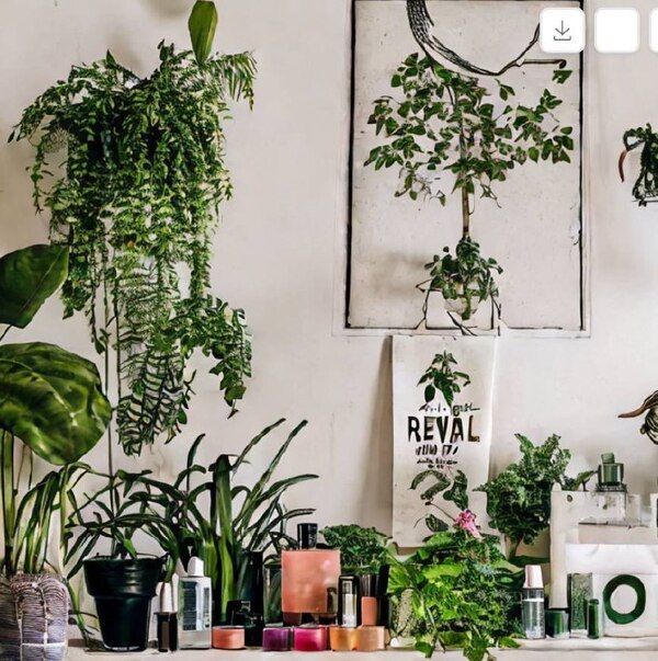Prompt: room with plants and cosmetics and poster witn inscription revival https://huggingface.co/spaces/google/sdxl
