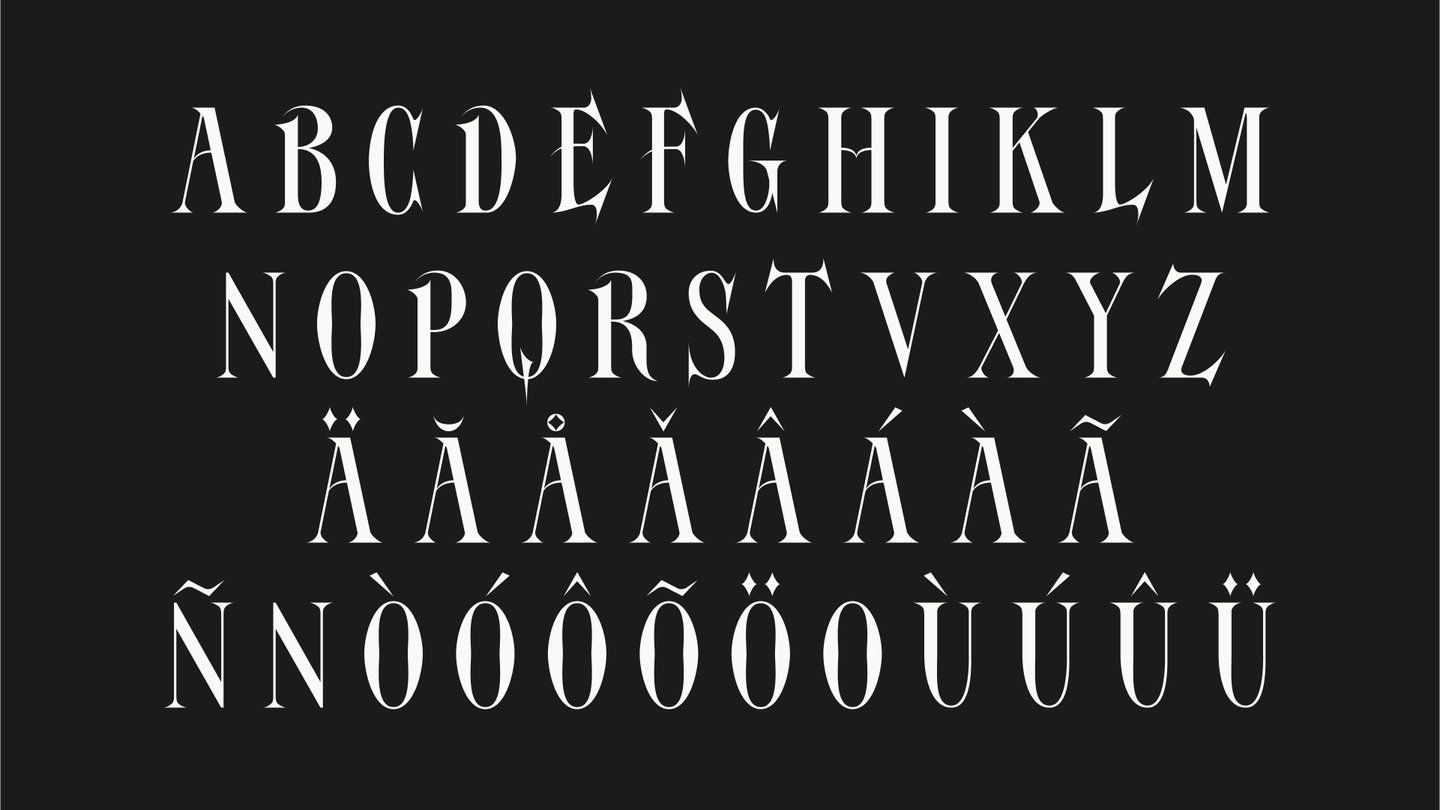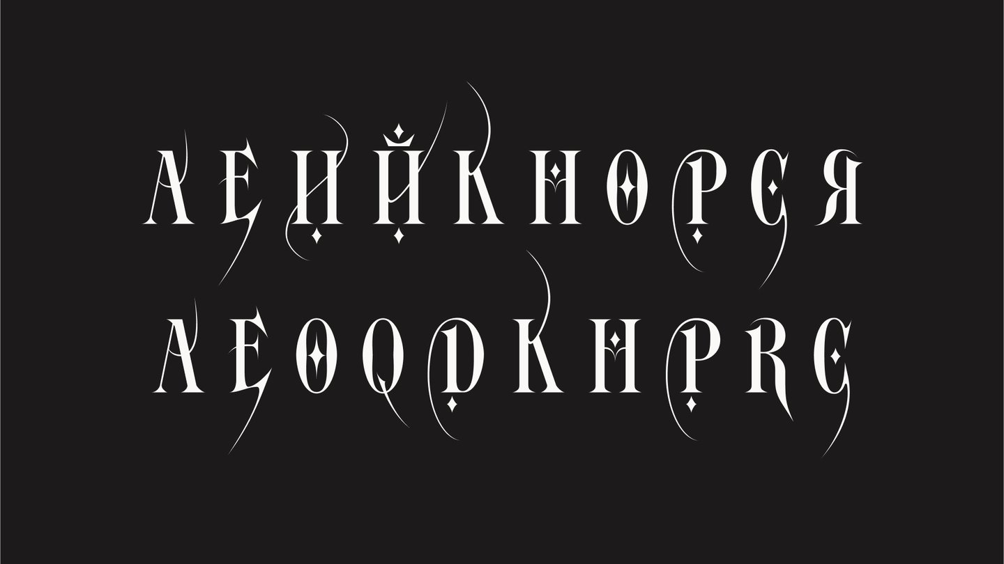 Специально для дипломного проекта был спроектирован акцидентный антиквенный шрифт Conlang с альтернативами, диакритическими знаками и стилистическими сетами, заимствующими черты известных конскриптов.