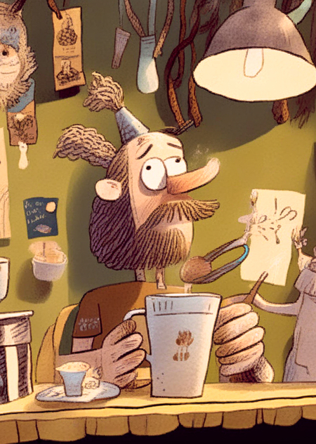 В итоге персонажи на получившихся изображениях наполнились характером. У них появились эмоциональные формы лица и тела. Так же был почерпнут и визуальный стиль автора.