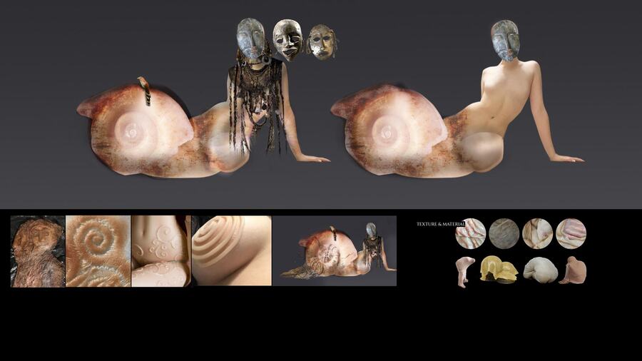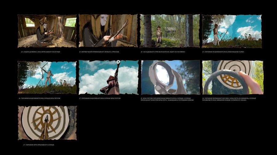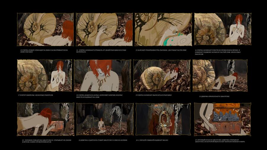 Фундаментом концепции миропостроения фильма стало написанное мною дипломное визуальное исследование «Пра-пермская металлопластика. Сюжеты и мотивы». Финно-угорская мифология пронизана тройственностью — поэтому мир фильма будет разделен на три уникальные области, каждая из которых соответствует одному из персонажей.