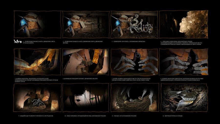 Relicts — фентези фильм-триптих об украшениях. (хрон. 15:10). Работа состоит из трех историй о трех реликвиях и их владельцах: о Голове-острове, о Пауке-птицееде, об Улитке-ключнице. Это альманах из фильмов-рассказов, миров, связанных между собой особыми магическими отношениями, отсылающими к древнему металлическому искусству финно-угров и артефактам пермского звериного стиля.