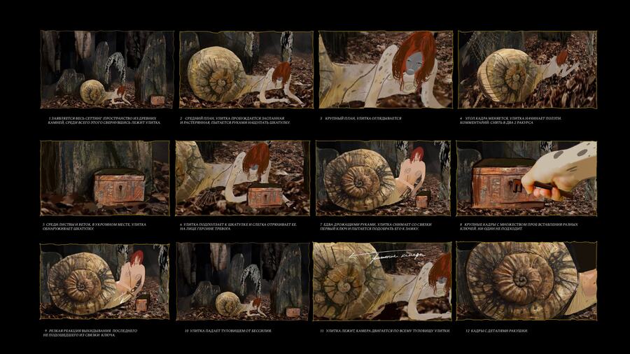 Автором была полностью разработана концепция миропостроения фильма, разработаны персонажи, пространства и декорации.