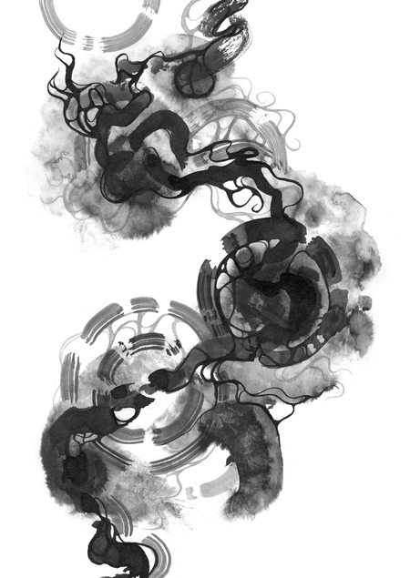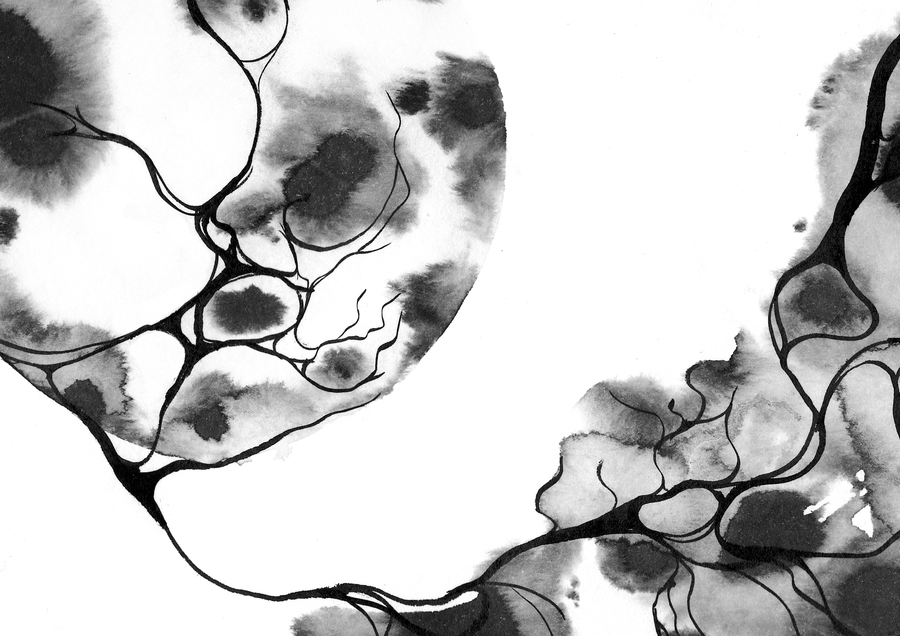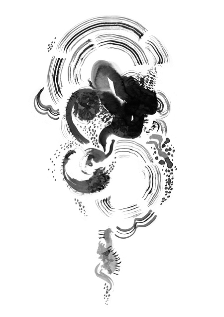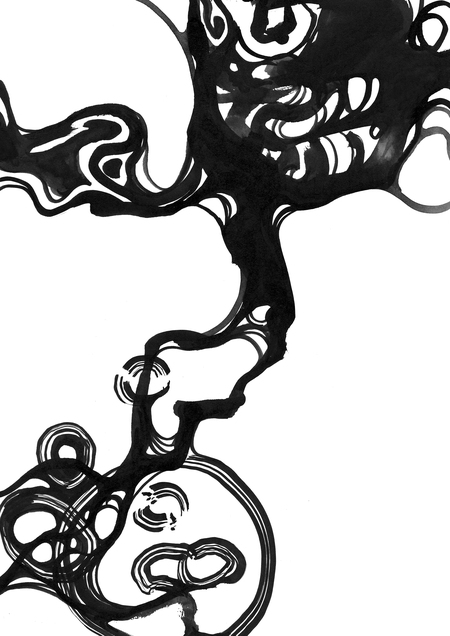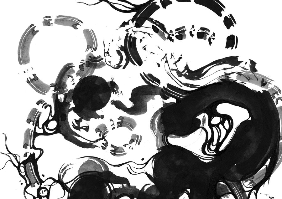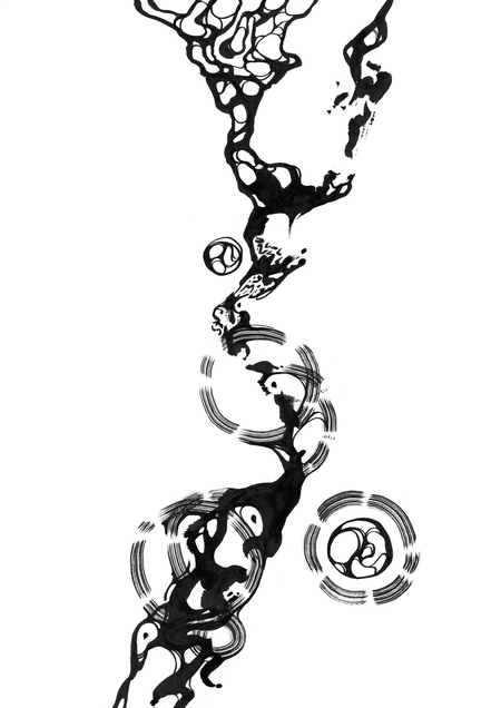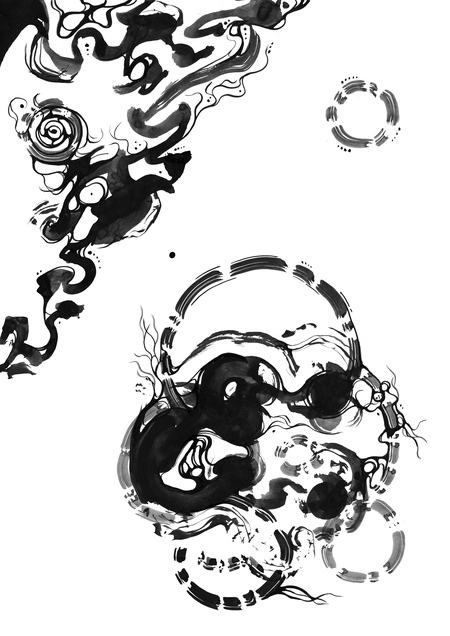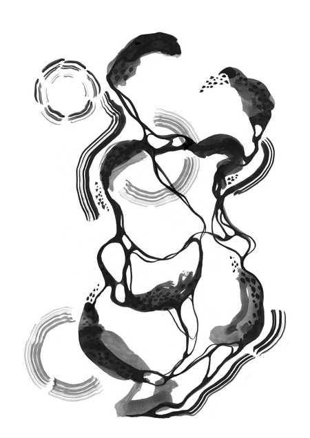 В конце концов я не могу четко выделить полноценную серию работ. Есть повторяющиеся элементы, которые проявлялись постепенно: зацикленные формы, круги, точки, переход одной линии в другую. Цикличность, некое повторение и в какой-то степени рутина — отображение моей люби к стабильности и некой приземленности. При этом различаются техники и композиции: соединение понятного с новым, ощущение свободы, которая и позволяет наслаждаться моментом.