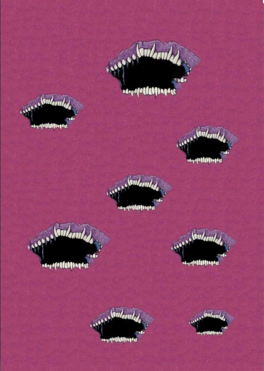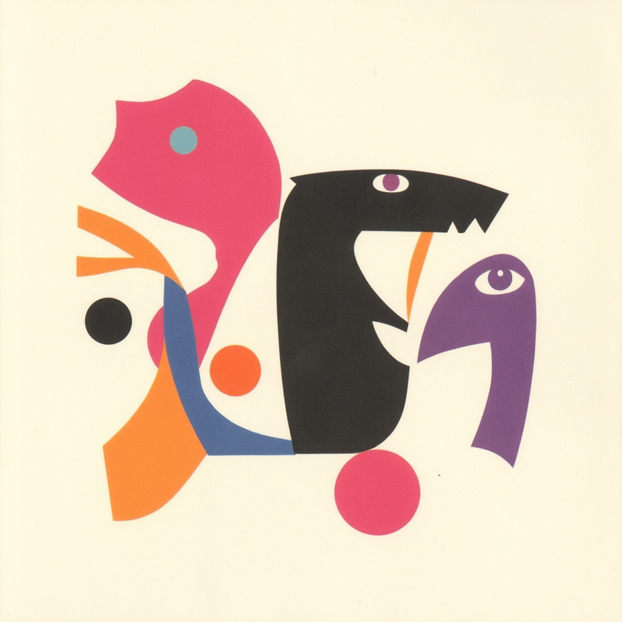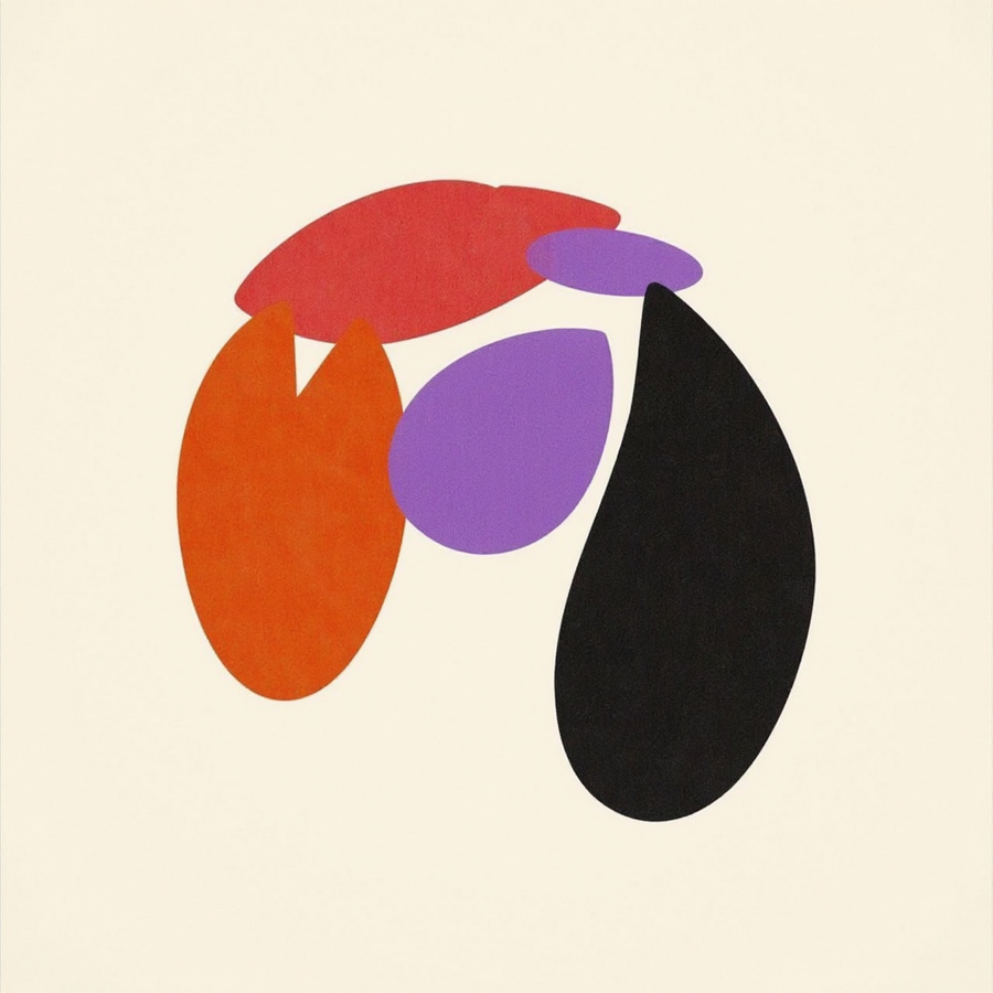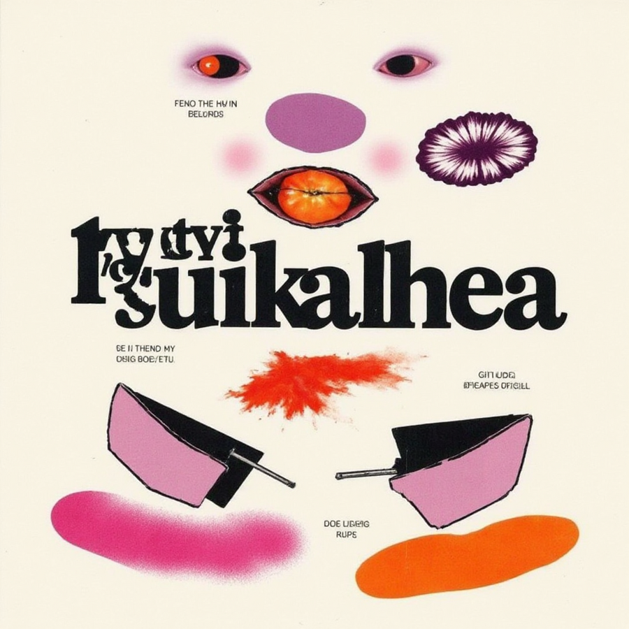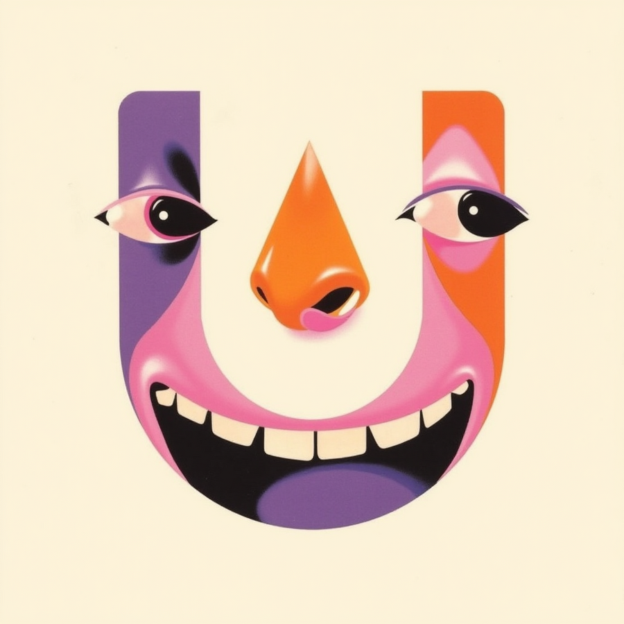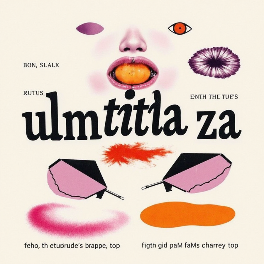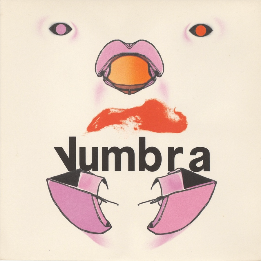 Стикеры сделанны с помощью Krea ai: text sticker for brand Umbra, inspired by abstract shadow theater sketches, surreal bulldog heads, minimal forms, limited color palette (pink, black, purple, orange)