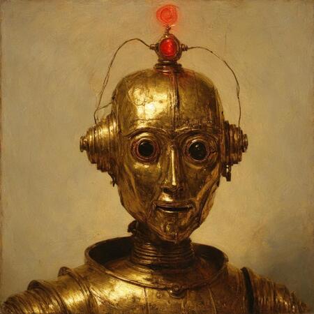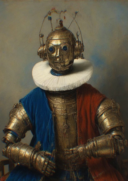 Я не хотел делать этот проект, но мне пришлось. Мне нравятся картины Рембрандта и старые роботы, поэтому я решил их соединить. Вот и всё.