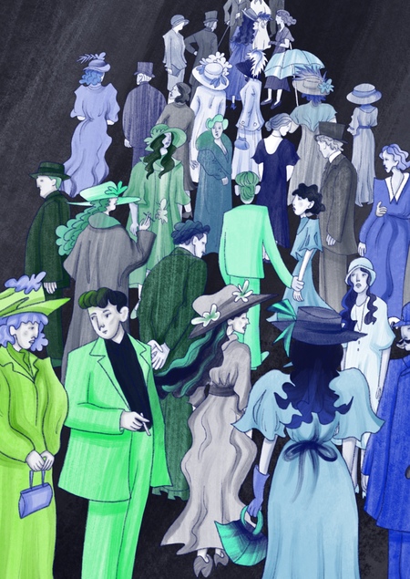 Я разработала серию мерча для проекта «Поэты серебряного века». Она состоит из иллюстрированной книги, футболок, платков и термосов.