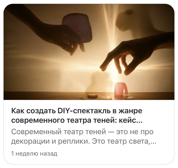 «DIY theater stage made of shadows and light, editorial, cinematic, minimal, soft lighting.» «Напиши SEO-заголовок для статьи о театре без слов в духе постдрамы.»