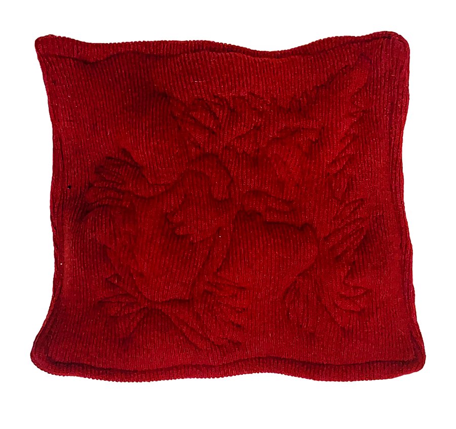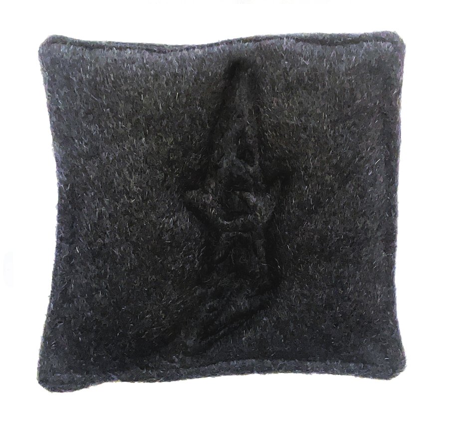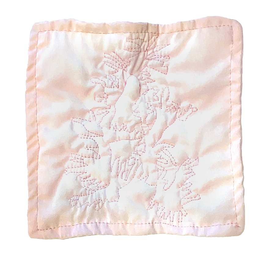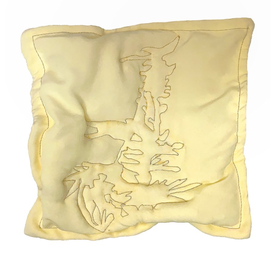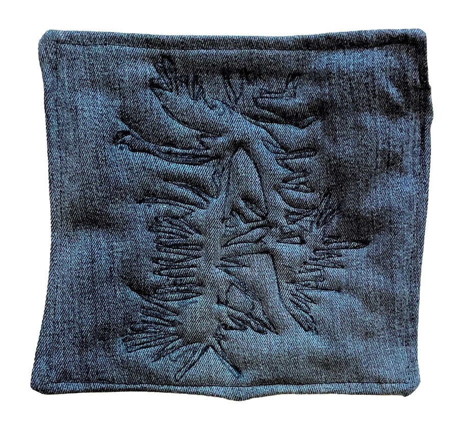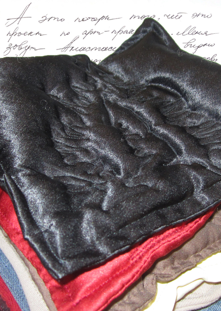 Вещи сильно отражают характер их обладателя, а также стиль и, иногда, привычки. Поэтому от хозяев почерка я взяла лоскутки ткани и одежды. Каждая иллюстрация выполнена как вышивка измененной буквы из почерка. В этих джинсах, например, Гоша часто носил телефон.