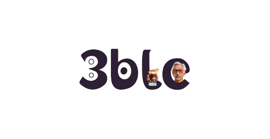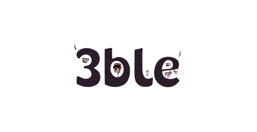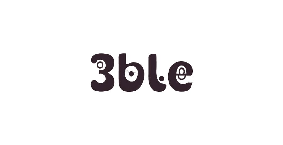minimalistic but funny and buzzy logo for carbonated drinks with specific flavours named 3ble, use typography as shape of faces or emotions like japanese emoticons. use black or puple color. no backgr