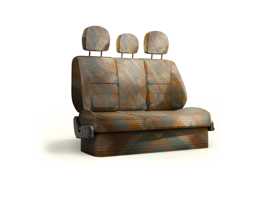 Коврик сплетён из ремней безопасности — элементов, созданных для фиксации тела в движении, для защиты во время удара.